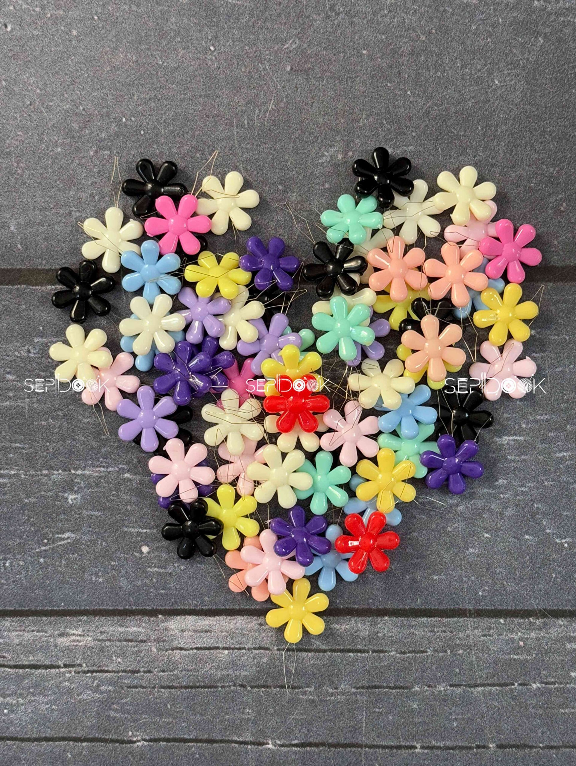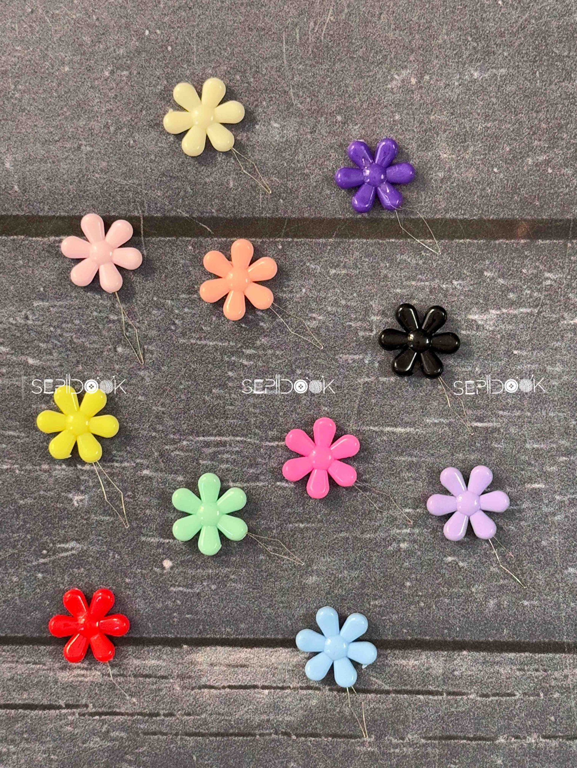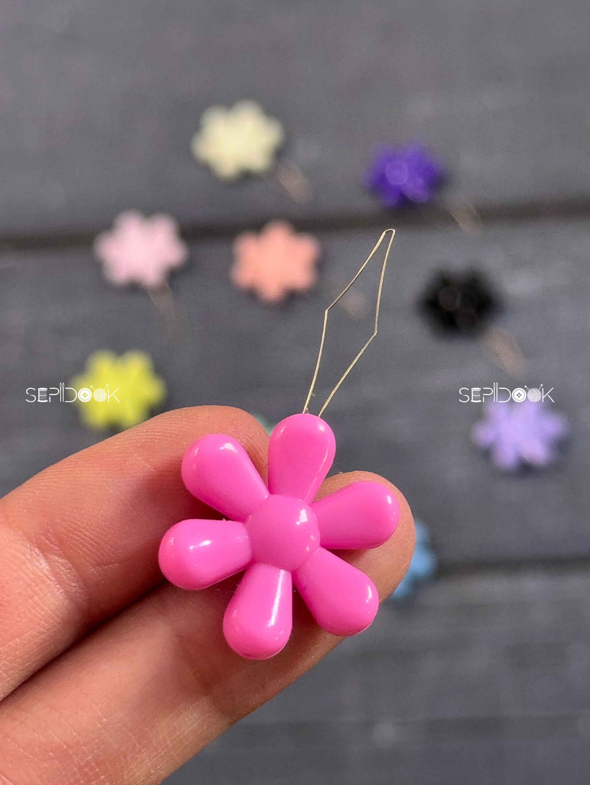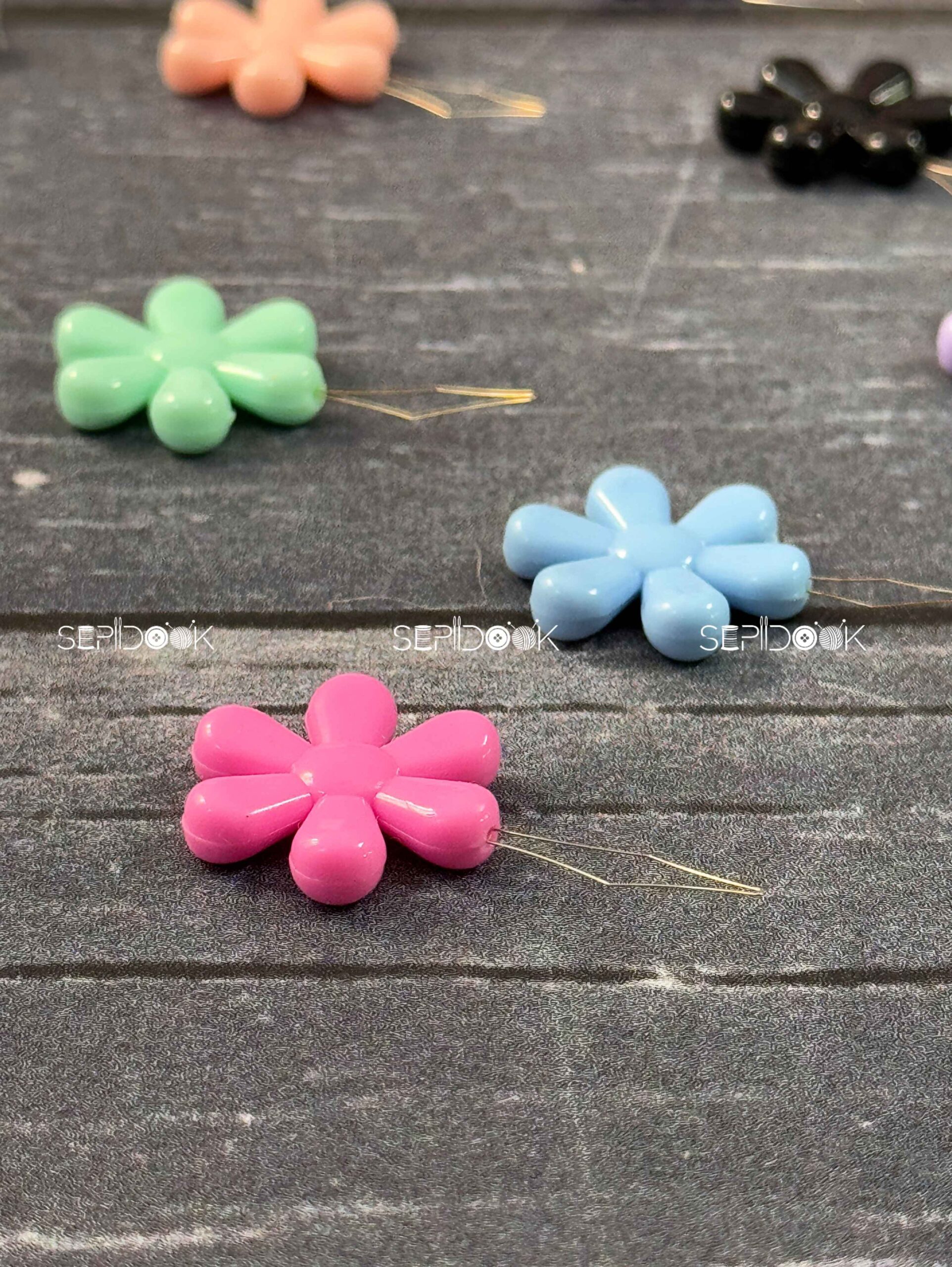 ابتدا قسمت گل پلاستیکی را در دست بگیرید و قسمت فلزی سوزن نخ کن را از سوراخ سوزنی که در دست دارید رد کنید.